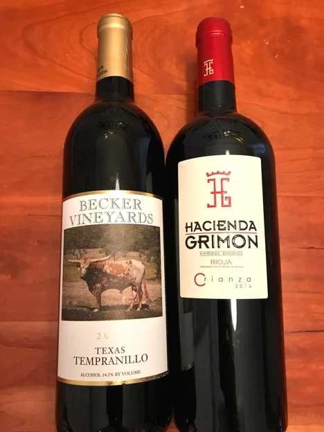 Texas wineries are proud of their success in harvesting Tempranillos and claim that their products could stand up to some of the best Riojas. We wanted to verify this claim by comparing a Texas Tempranillo with a Rioja Tempranillo roughly of similar vintage characteristics and price range (approximately $15-20). We chose a 2014 Tempranillo from Becker Vineyards based in the Hill Country and a 2014 Crianza Tempranillo from Hacienda Grimon based in Jubera Valley, in the heart of Rioja.